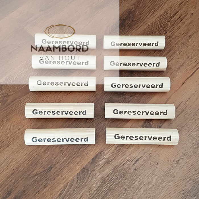 Handgemaakte houten gereserveerd bordjes voor uw eetcafé, restaurant.