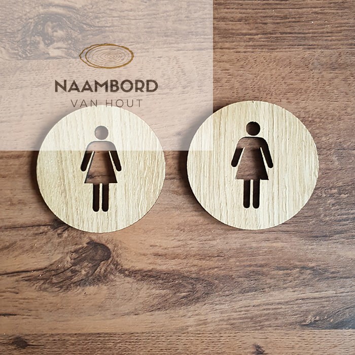 Houten toiletbordje man/vrouw licht hout